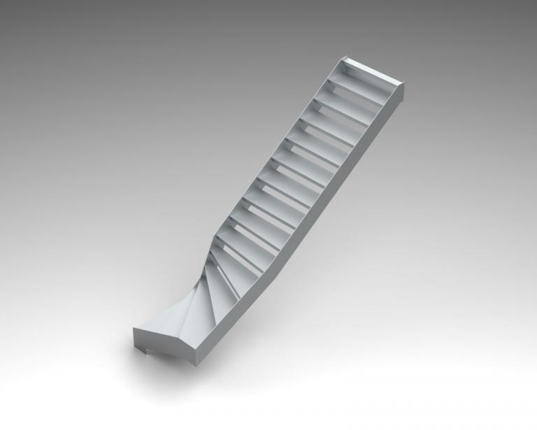 Treppe 6 mit einem Podest mittig, 90 Grad linkssschwenkende Laufrichtung, rechts an der Wand anliegend