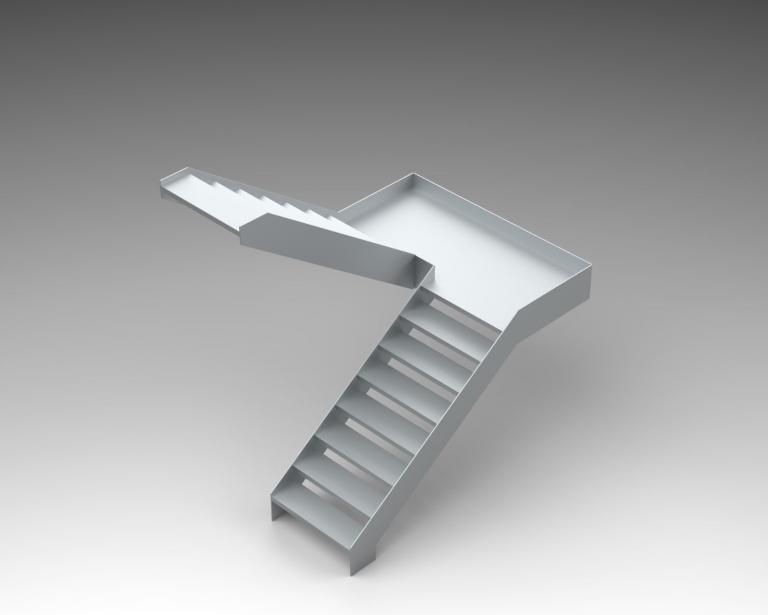 Lange der Treppe 500 cm, Breite 100 cm, Podest 100x 100cm, Stahlwange Lasergeschnitten.