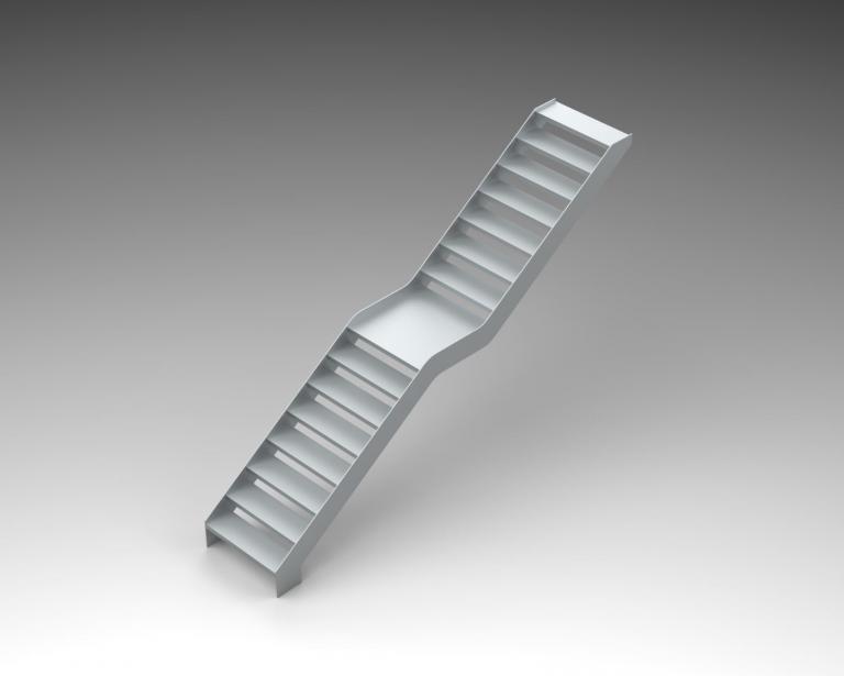 Lange der Treppe 500 cm, Breite 100 cm, Podest 100x 100cm, Stahlwange Lasergeschnitten. Geländer aus Acryl mit Handlauf in Edelstahl, unbehandelt.
