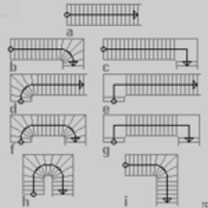 (f) gerade mit viertelgewendeltem Antritt und Austritt