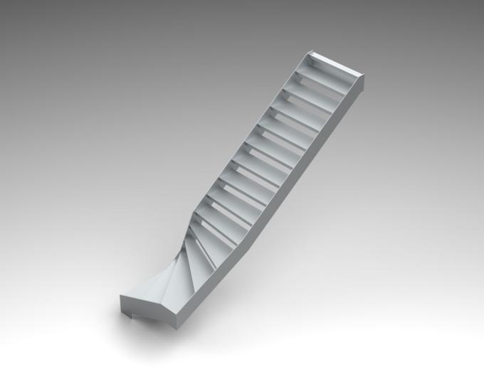 Lange der Treppe 500 cm, Breite 100 cm, Podest 100x 100cm, Stahlwange Lasergeschnitten. Geländer aus Acryl mit Handlauf in Edelstahl, unbehandelt.