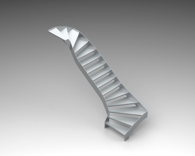 Lange der Treppe 500 cm, Breite 100 cm, Podest 100x 100cm, Stahlwange Lasergeschnitten. Geländer aus Acryl mit Handlauf in Edelstahl, unbehandelt.