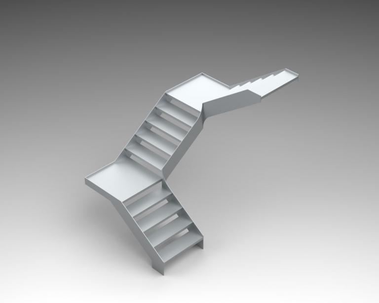 Treppe 5 mit einem Podest mittig, 90 Grad rechtsschwenkende Laufrichtung, links an der Wand anliegend