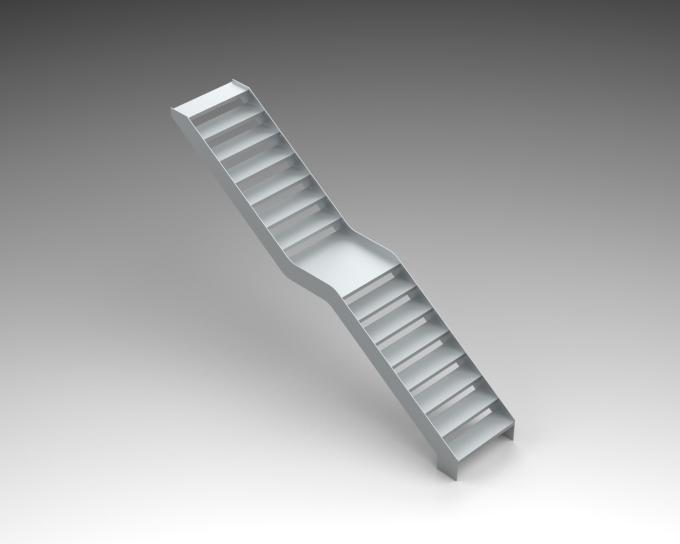 Lange der Treppe 500 cm, Breite 100 cm, Podest 100x 100cm, Stahlwange Lasergeschnitten. Geländer aus Acryl mit Handlauf in Edelstahl, unbehandelt.