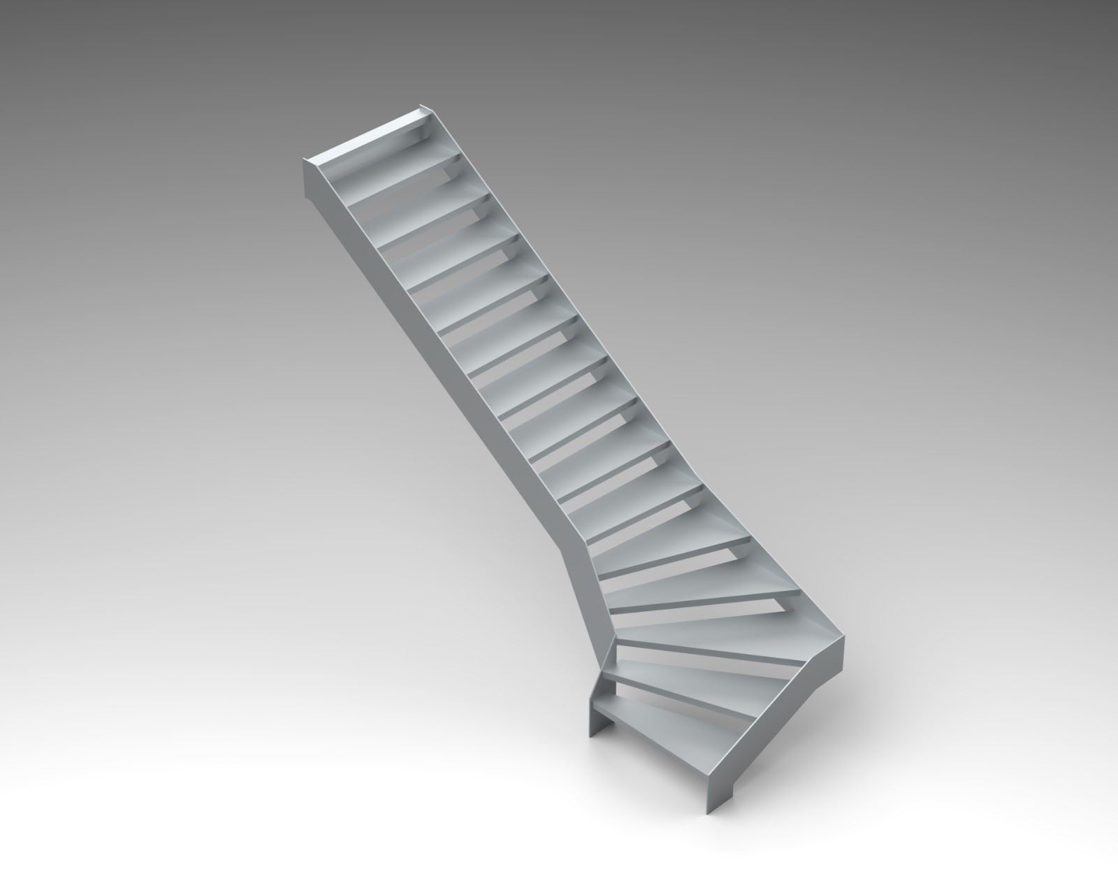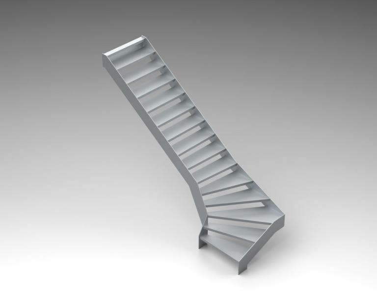 Lange der Treppe 500 cm, Breite 100 cm, Podest 100x 100cm, Stahlwange Lasergeschnitten. Geländer aus Acryl mit Handlauf in Edelstahl, unbehandelt.